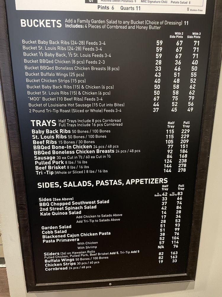 Full size. Wedge of iceberg lettuce topped with house-made bleu cheese dressing, signature BBQ sauce, diced tomatoes, bacon, & bleu cheese crumbles, crispy onion strings